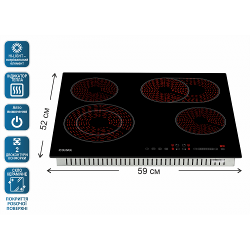 | Специфічні конфорки | 2 двоконтурні конфорки |