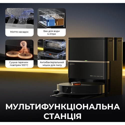 | Комплектація: | Модуль для миття х 2, Гарантійний талон, Інструмент для чищення пристрою, Мультифункціональна станція з автовивантаженням сміття, Насадки для миття підлоги х 2, Робот-пилосос миючий, Інструкція користувача, Подовжувальна пластина рампи |